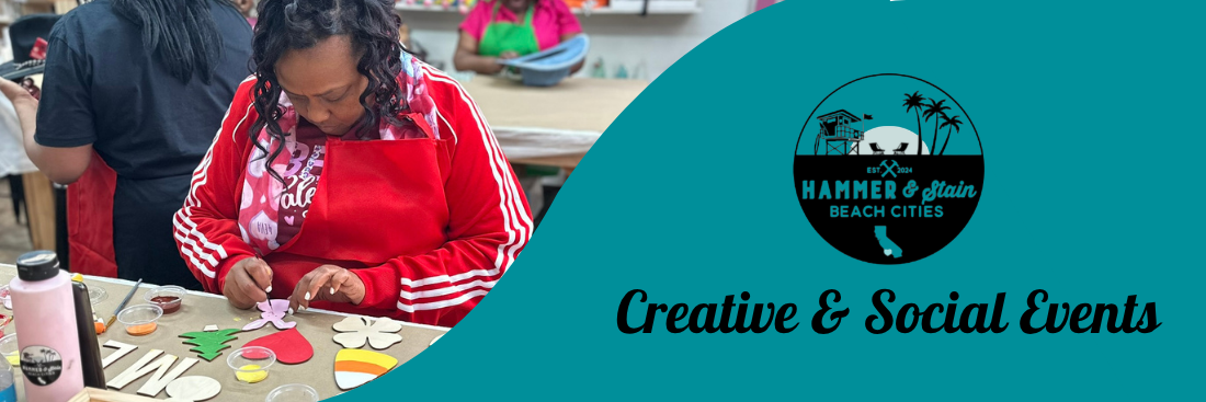 Looking for a fun and creative way to spend time with friends or family? Join one of our Creative Social Workshops at Hammer and Stain Beach Cities! Our hands-on DIY experiences allow you to explore your artistic side while creating a personalized work of art in a fun, social setting.